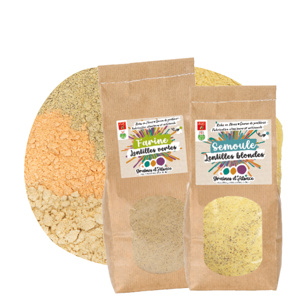 Sous la marque Graines d’Alsace, vous trouverez des lentilles vertes, des lentilles corail et sous peu des lentilles blondes, du quinoa et des pois chiches. Les lentilles vertes, corail et les pois chiches sont conditionnés en boite de 500grs, le quinoa en boite de 400grs. Les lentilles vertes et corail, pois chiches et quinoa Graines d’Alsace sont des légumes secs dont vous retrouverez les conseils de préparation dans la présentation de chaque produit.