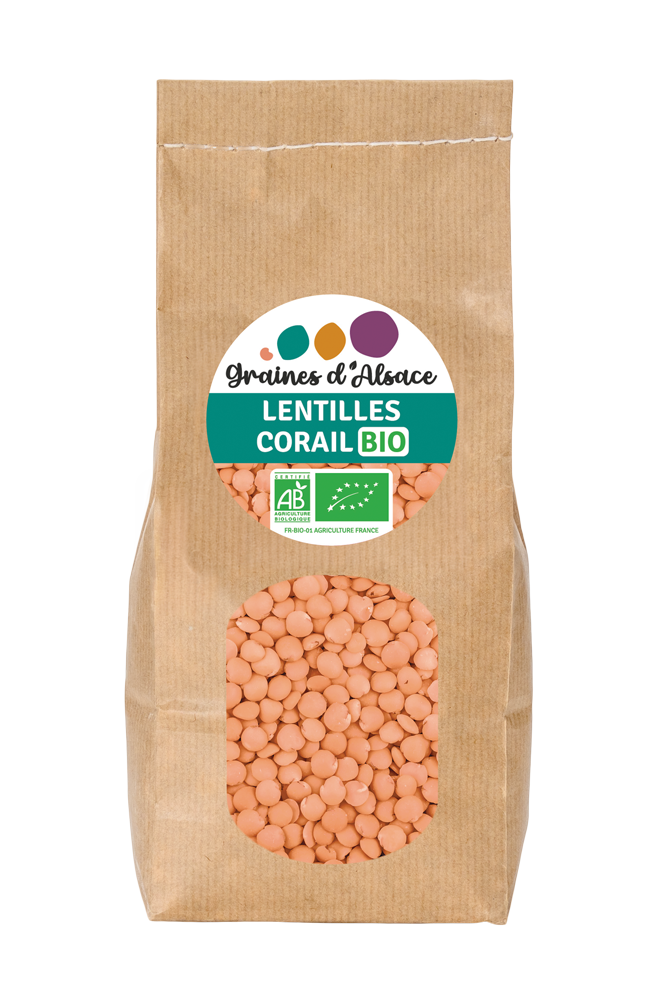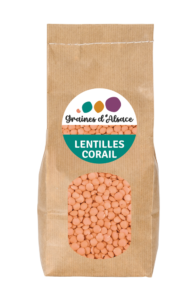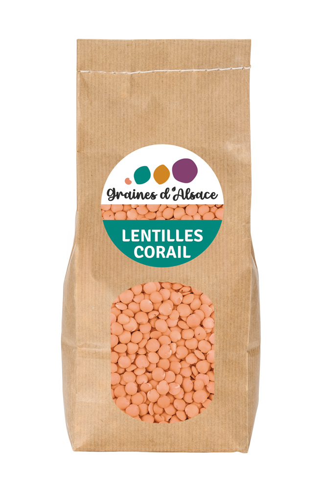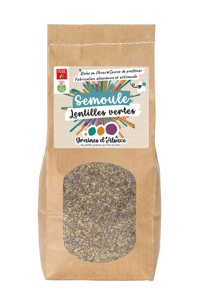 Sous la marque Graines d’Alsace, vous trouverez des lentilles vertes, des lentilles corail et sous peu des lentilles blondes, du quinoa et des pois chiches.